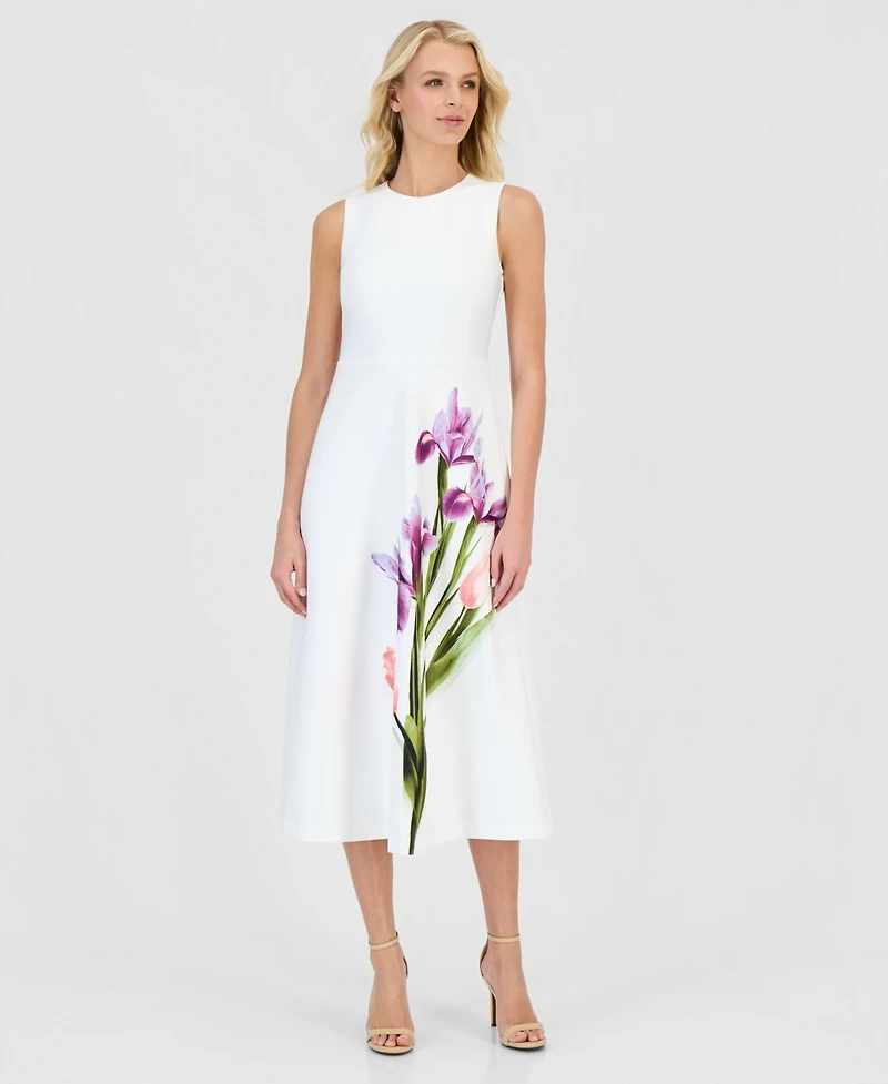 Step into refined sophistication with this Anne Klein midi dress, featuring a crew neck and sleeveless cut. A-line silhouette creates a structured fit through the bodice while allowing graceful movement through the skirt.