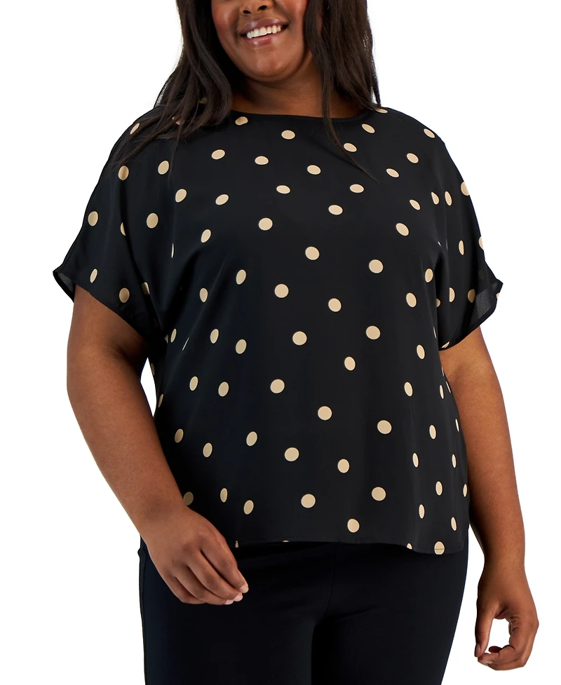 Refresh your wardrobe with Anne Klein's dot-print bateau-neck top.