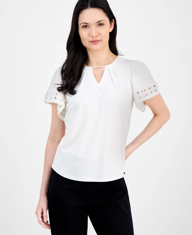 Anne Klein Women's Harmony Keyhole-Neck Flutter-Sleeve Top