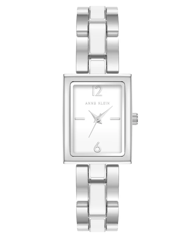 Anne Klein Women's Quartz Rectangular White Enamel and Silver-Tone Metal Alloy Watch, 22mm