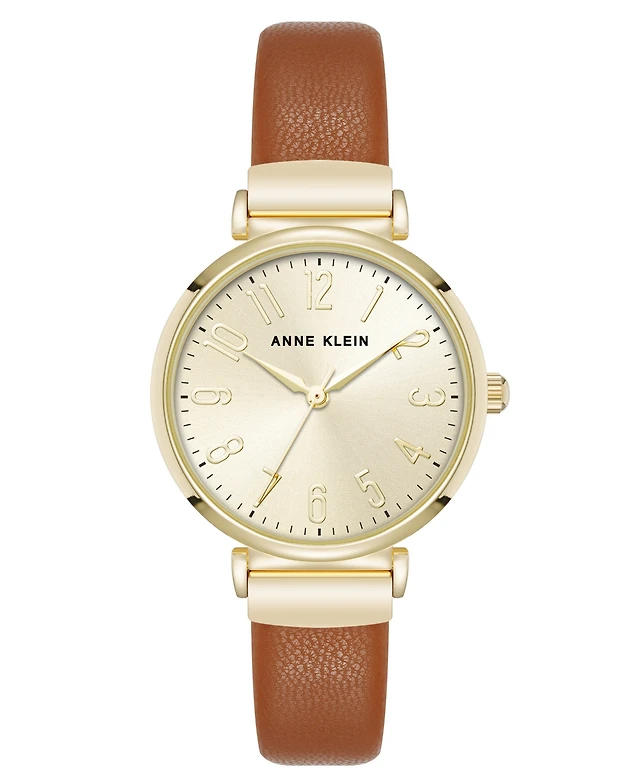 Anne Klein Women's Quartz Easy to Read Brown Leather and Gold-Tone Alloy Metal Watch, 32.5mm