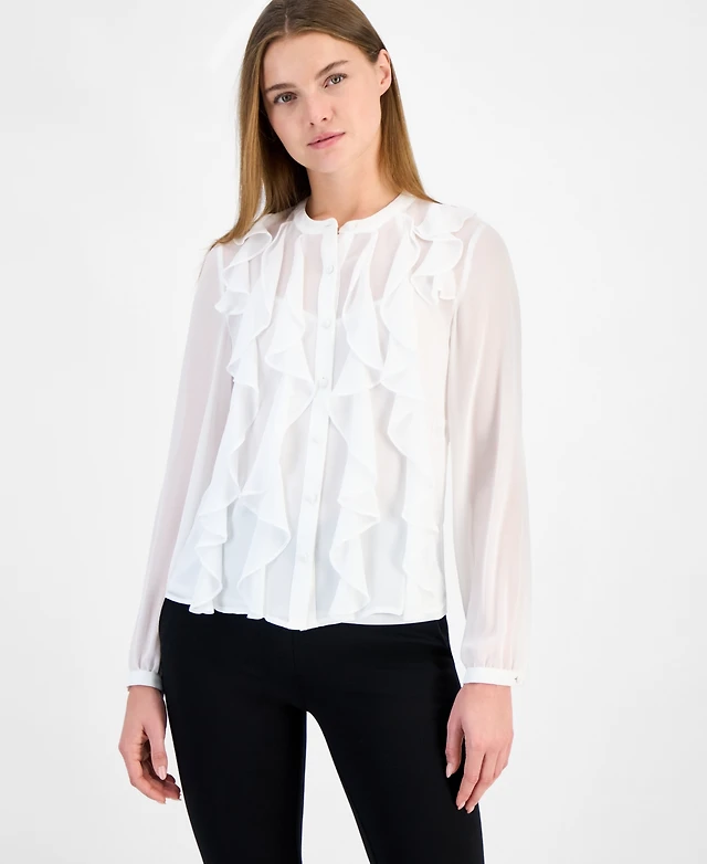 Anne Klein Women's Ruffle-Front Button-Front Blouse