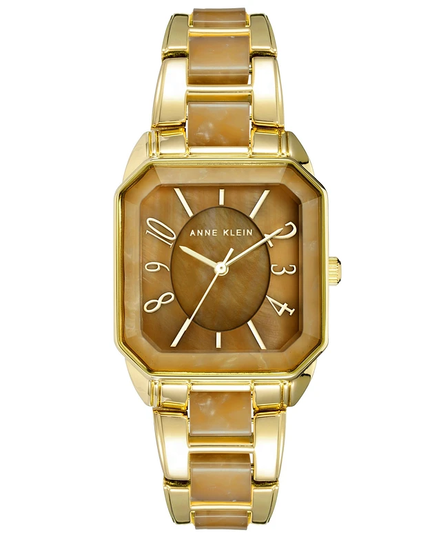Anne Klein Women's Square Gold-Tone Alloy with Brown Plastic Bracelet Watch 38mm