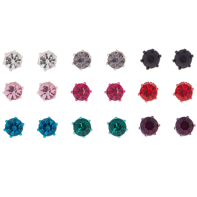Anodized Crystal Stud Earrings - 9 Pack