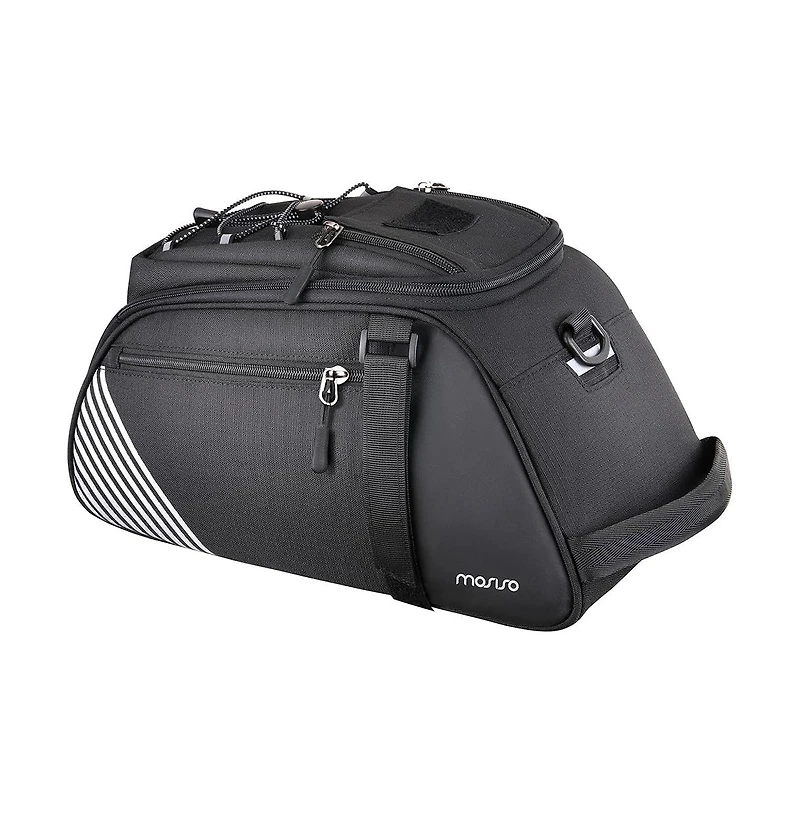 Designed for versatility and all-weather performance, this 8L bike rack bag offers practical storage with added protection and flexibility. The included waterproof rain cover helps keep your belongings dry during heavy rain, while the durable water-resistant material provides everyday protection from outdoor elements. With multiple compartments, it keeps essentials like your phone, tools, and accessories organized and within easy reach. The convertible design features hidden shoulder straps, allowing the bag to transform into a backpack for convenient off-bike use. Secure fastening straps ensure a stable fit on most bike rear racks, making it an ideal solution for commuting, travel, and outdoor cycling.