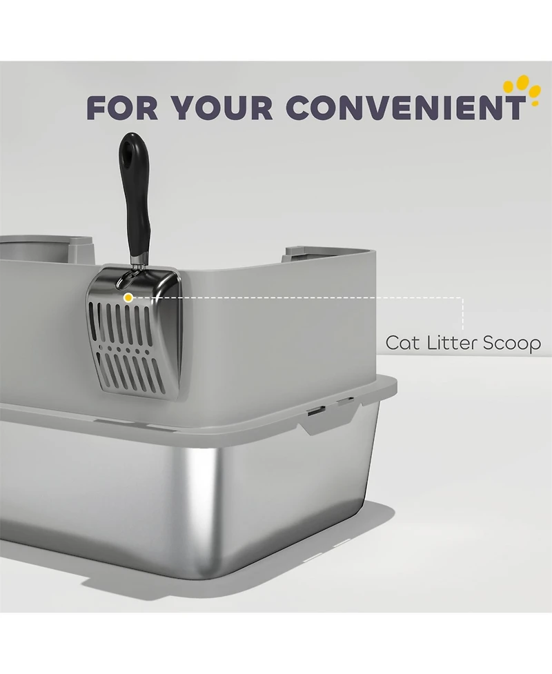 Aostirmotor Sleek Gray Stainless Steel Litter Box with High Sides & Scoop – Elevate Your Home with Refined Odor Control