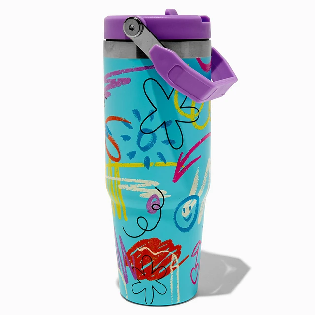 Aqua Doodle Flip Straw Top Handle Stainless Steel Water Bottle