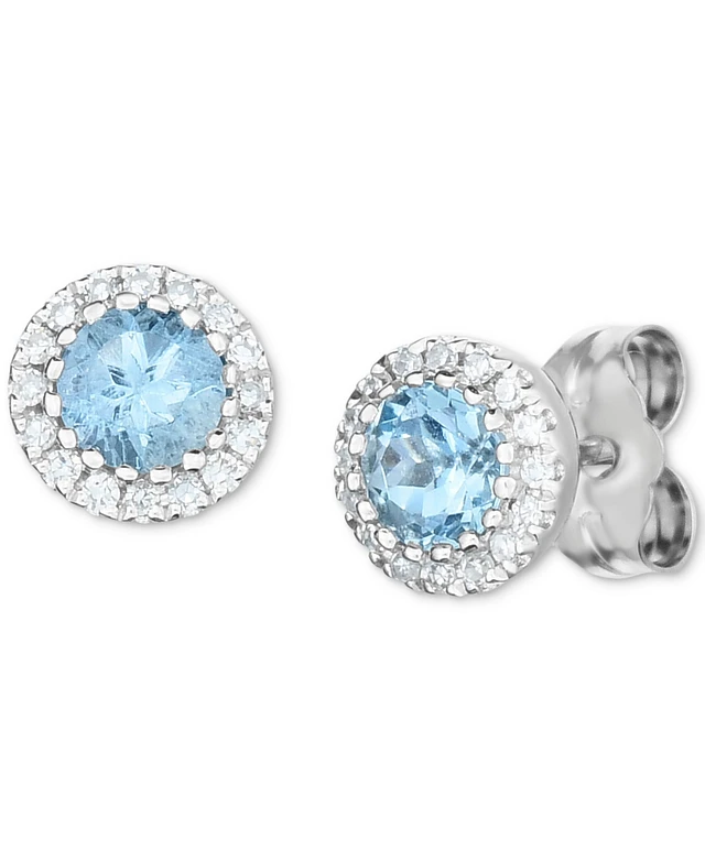 Aquamarine (1/2 ct. t.w.) & Diamond (1/8 ct. t.w.) Halo Stud Earrings in 14k White Gold
