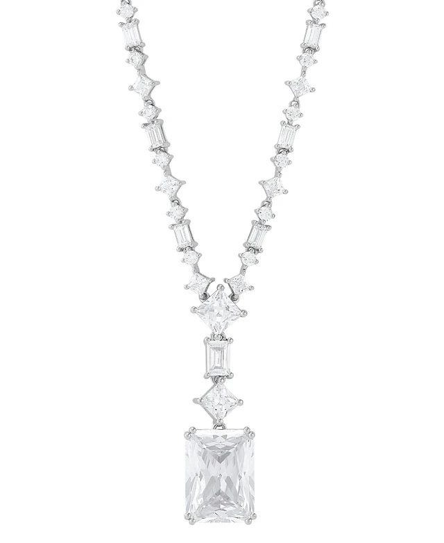 Arabella Cubic Zirconia Mixed Cut Teardrop 18" Lariat Necklace in Sterling Silver
