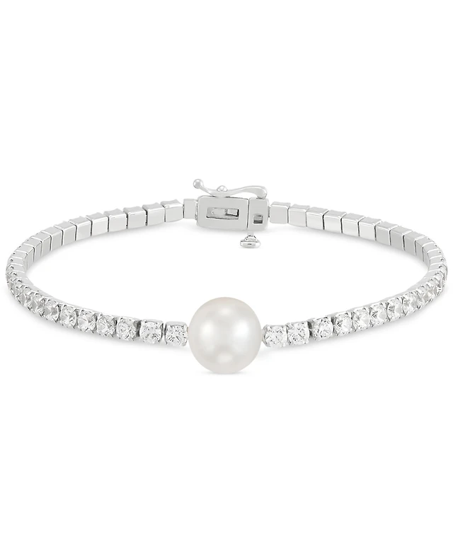 Arabella Cultured Freshwater Pearl (10mm) & Cubic Zirconia Tennis Bracelet in Sterling Silver