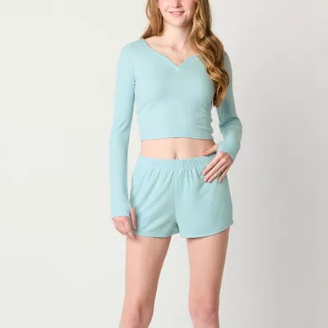 Arizona Body Womens Juniors Rib Long Sleeve 2-pc. Shorts Pajama Set
