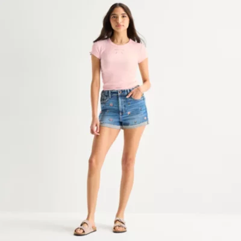 Arizona Curvy Womens 2 1/2" Mid Rise Juniors 1 Pair Denim Short