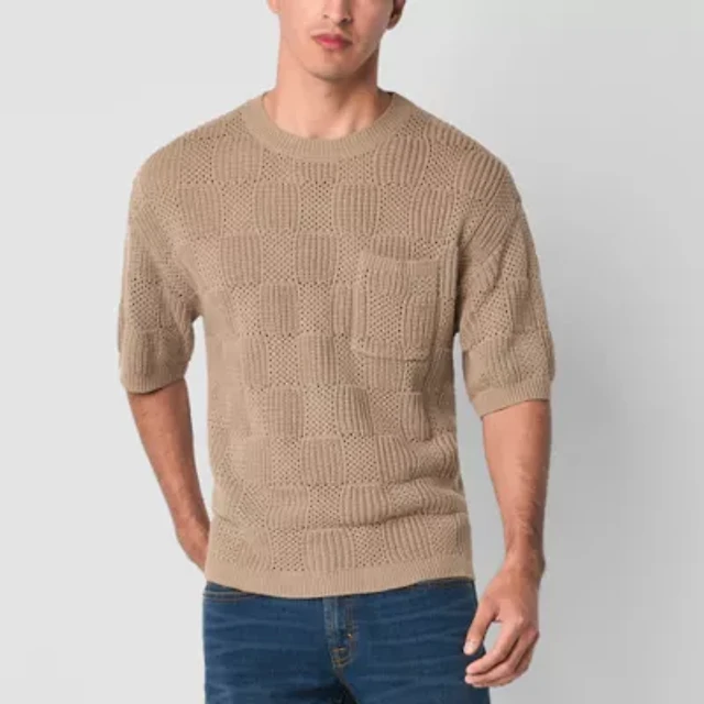 Arizona Mens Open Knit Short Sleeve Sweater Polo