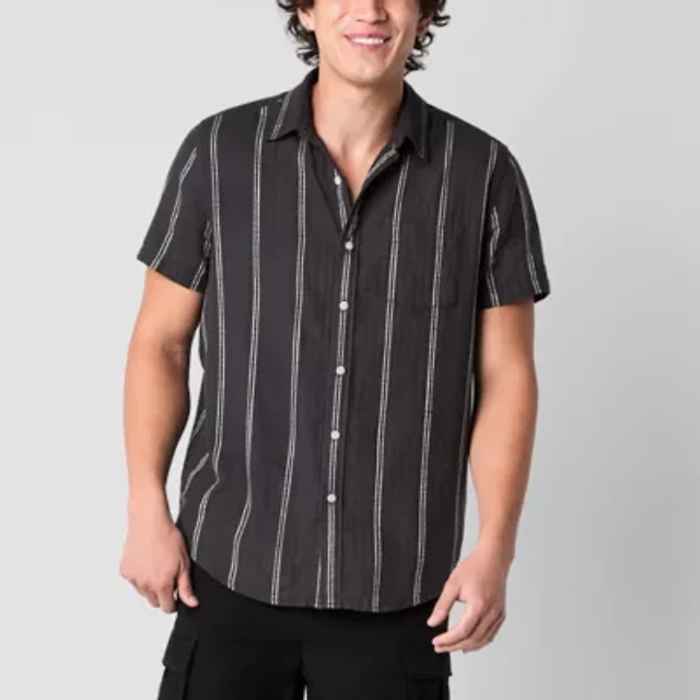 Arizona Mens Long Sleeve Striped Button-Down Textured Shirt