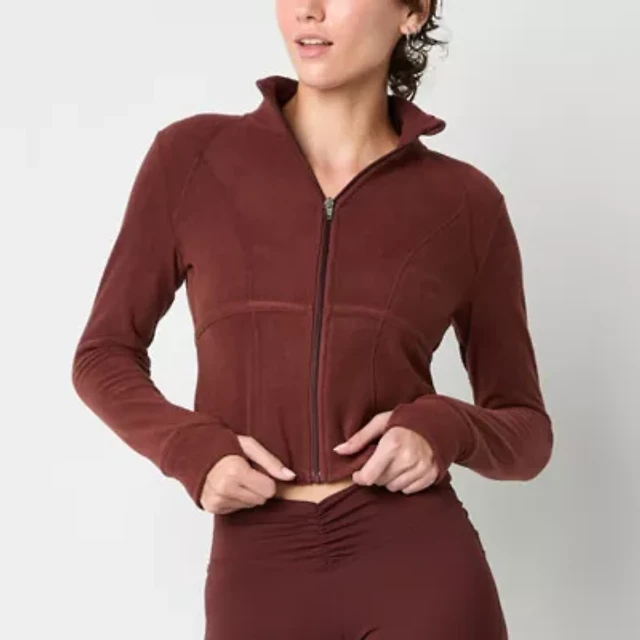 Fleece Zip Front Mock Neck Long Sleeve Jacket