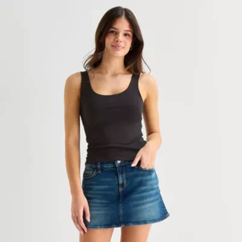 Arizona Womens Juniors Scoop Neck Sleeveless Tank Top
