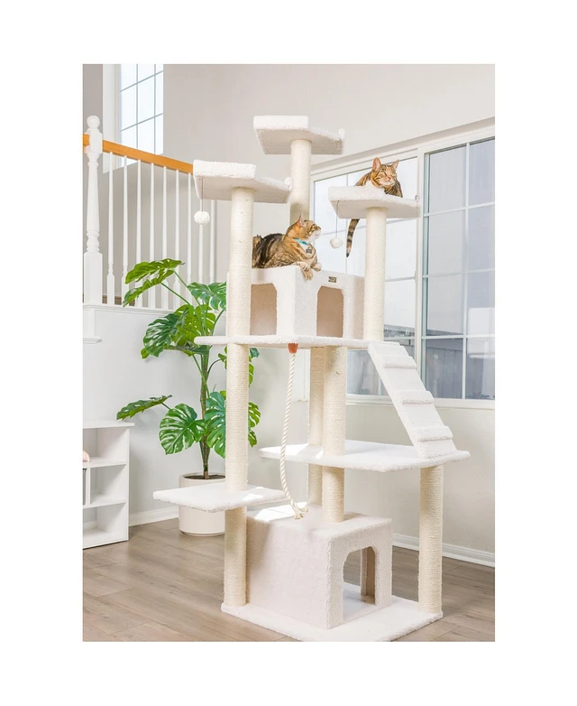 Armarkat B8201 Classic Real Wood Cat Tree In Ivory, Jackson Galaxy Approved, Multi Levels With Ramp, Three Perches, Rope Swing, Two Condos