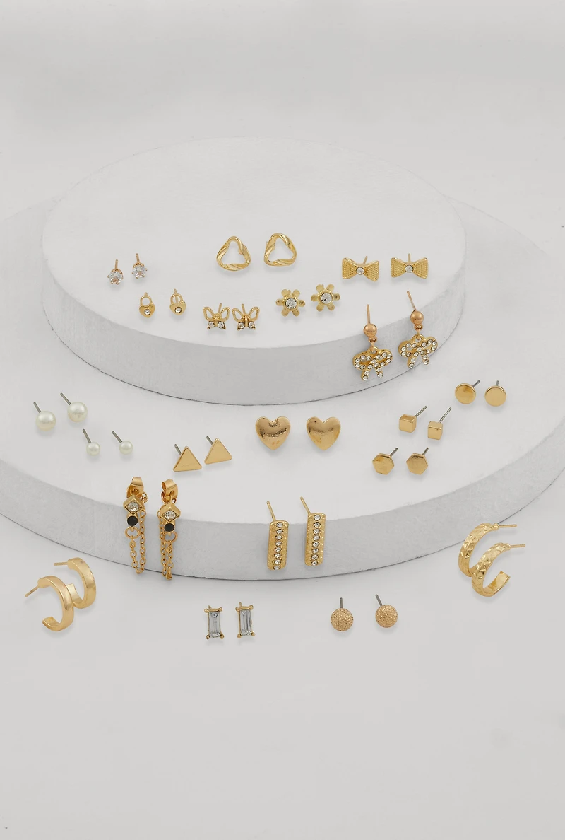 Details and Fit Post - Push Back Drop Earrings Hoop Earrings Stud Earrings Chains Faux Pearls Metallic Solid Set of 20 Cubic Zirconia Final Sale - No Returns Content and Care Material: All Man-Made Material Country Of Origin: China Rainbow Item Number 1135057695222 GOLD - 1135057695222072