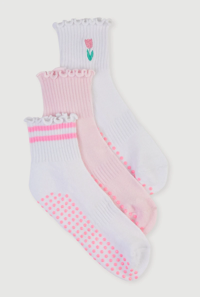 Assorted Lettuce Edge Pilates Socks 3 Pack Size 4-10