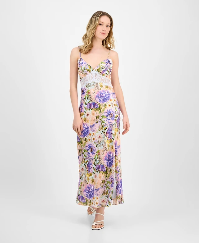 Astr the Label Women's Ivanna Floral Lace-Trim Sweetheart Maxi Dress