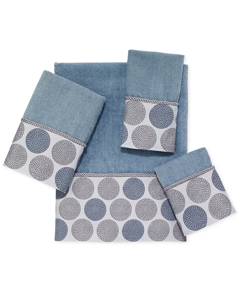 Crafted from cozy cotton finished with a medallion jacquard pattern and corded trim, this Dotted Circles bath towel from Avanti gives your bathroom contemporary appeal.