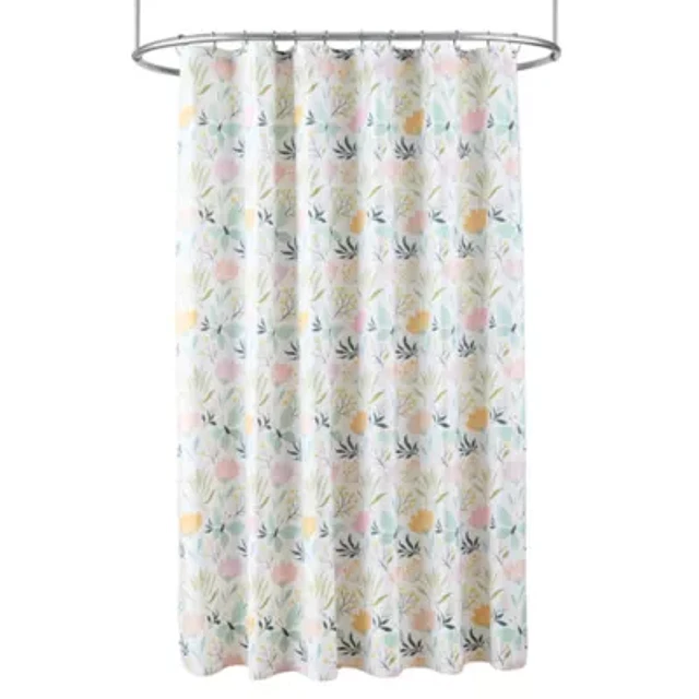 Americanflat 72x75 Hookless Shower Curtain - Floral and Shower Curtain with Sheer Panel, Snap-In Liner, and Grommets