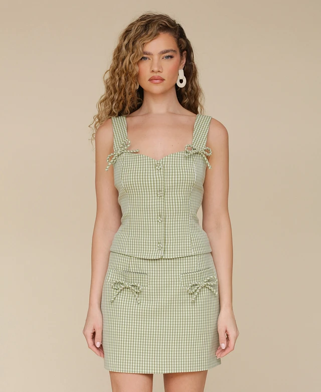 Avec Les Filles Women's Bow-Trim Sweetheart-Neck Gingham Top