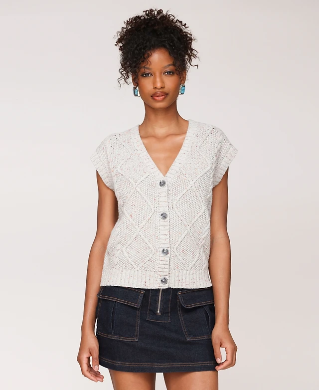 Avec Les Filles Women's Cable Knit Button-Front Vest