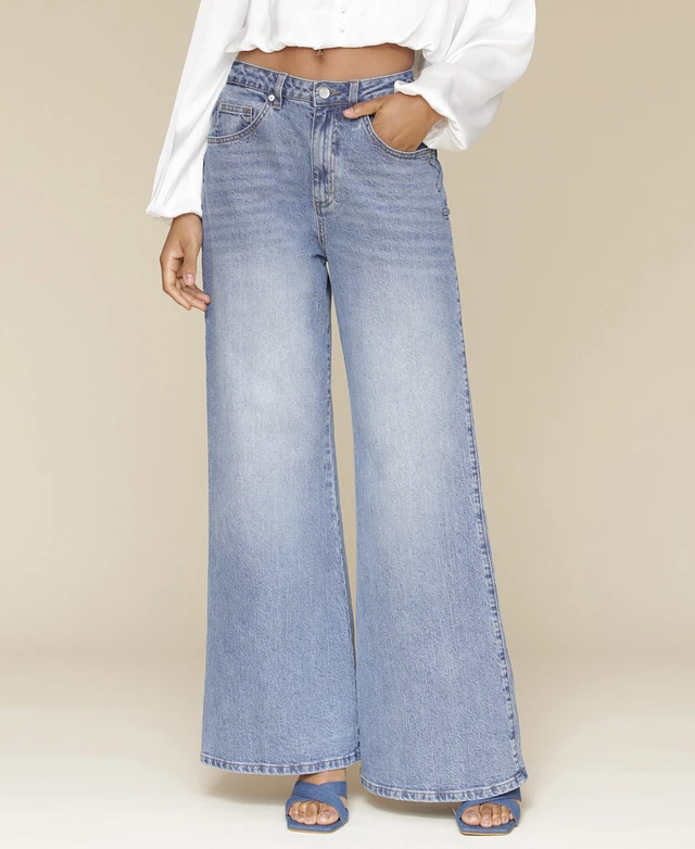 Avec Les Filles Women's Rhinestone-Trim Hollywood-Waist Wide-Leg Jeans