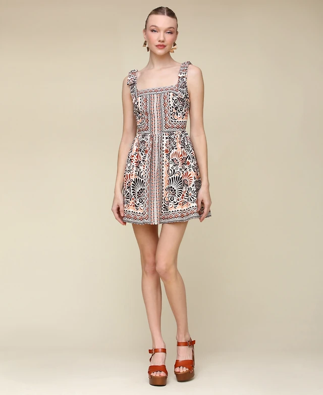 Avec Les Filles Women's Printed Linen-Blend Bow-Strap Mini Dress
