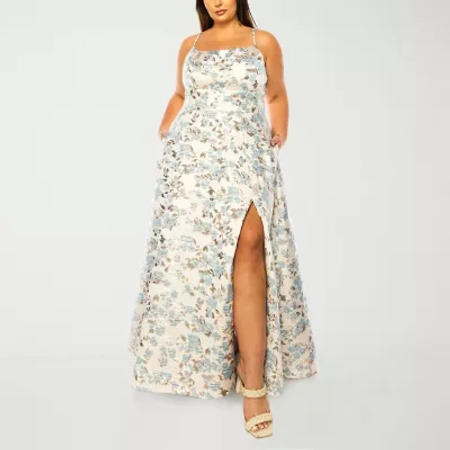 B. Smart Womens Juniors Plus Sleeveless Floral Ball Gown