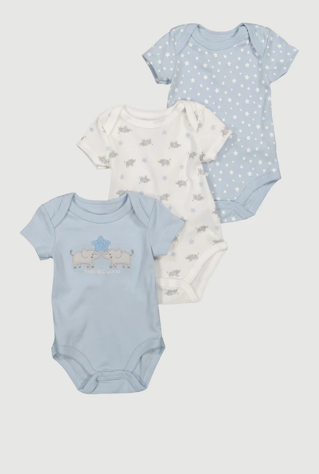 Baby Boys 0-9M Hello Big World Graphic Bodysuits 3 Pack, Blue, Size 3-6M
