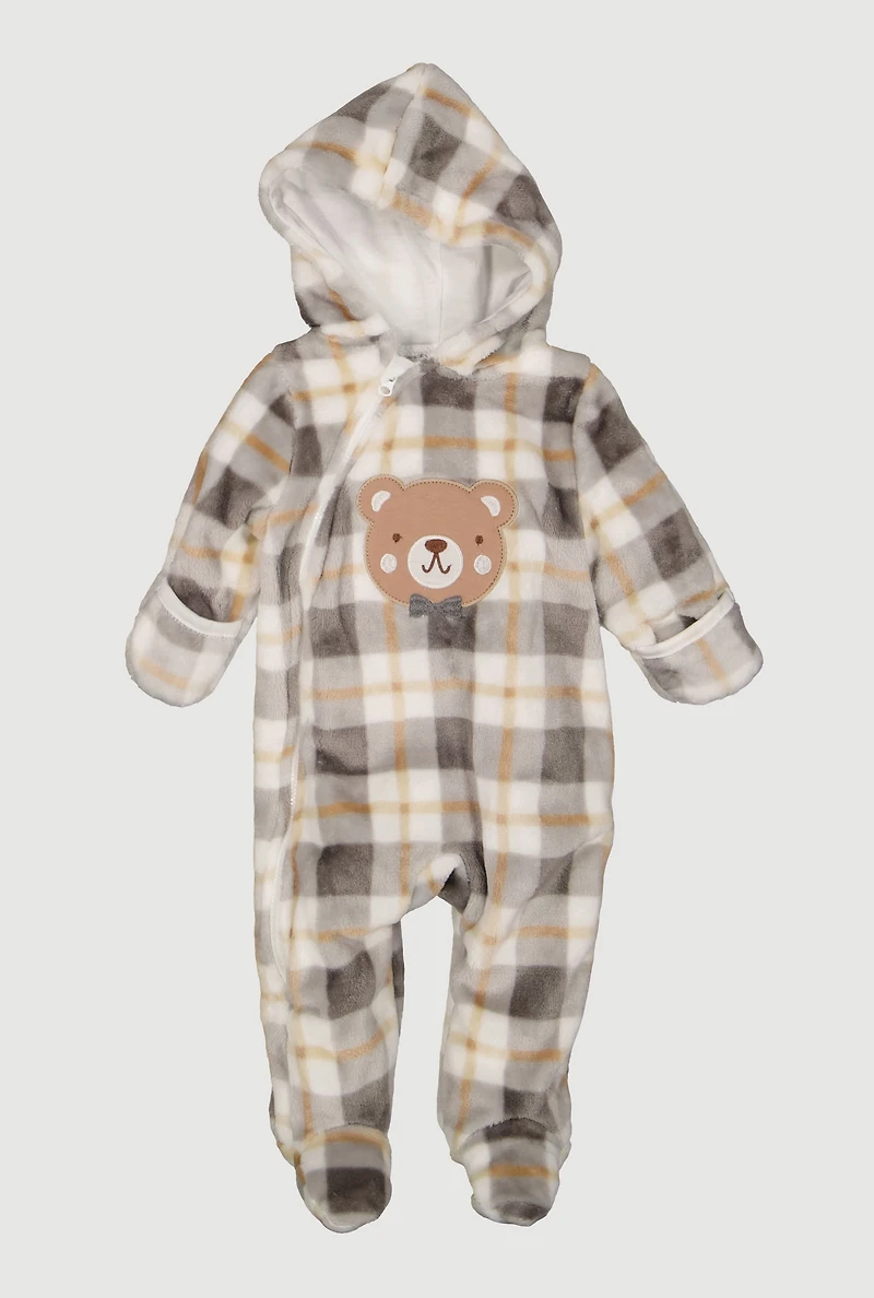 Baby Boys 0-9M Plaid Bear Patch Graphic Footed Jumpsuit