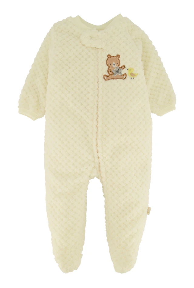 Baby Girls 0-9M Teddy Bear Graphic Print Footed Jumpsuit, Beige, Size 0-3M