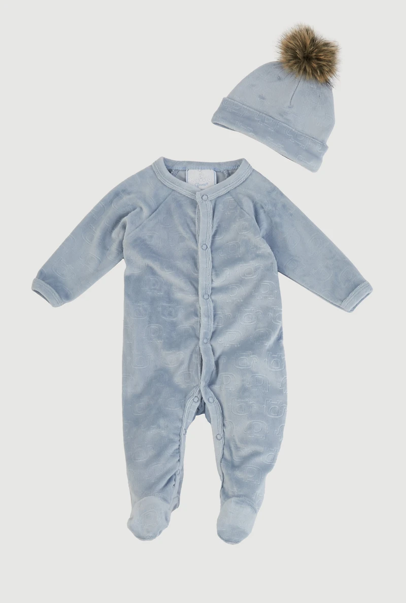 Baby Boys 0-9M Velour Footed Jumpsuit with Hat