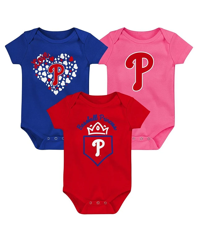Baby Boys and Girls Outerstuff Red, Royal, Pink Philadelphia Phillies Three-Pack Home Run Bodysuit Set