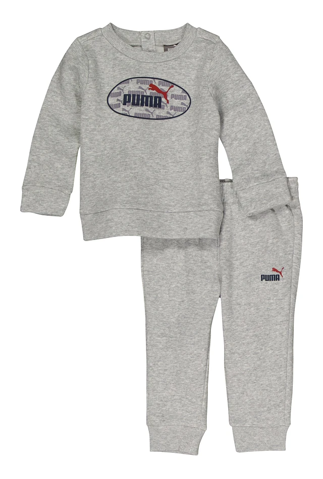 Baby Boys Puma Marled Graphic Pullover Sweatshirt and Joggers, Grey, Size 12M