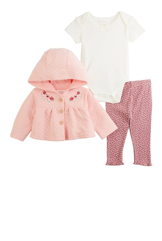 Baby Girls 0-9M Floral Hooded Jacket and Leggings with Bodysuit, Pink, Size 6-9M