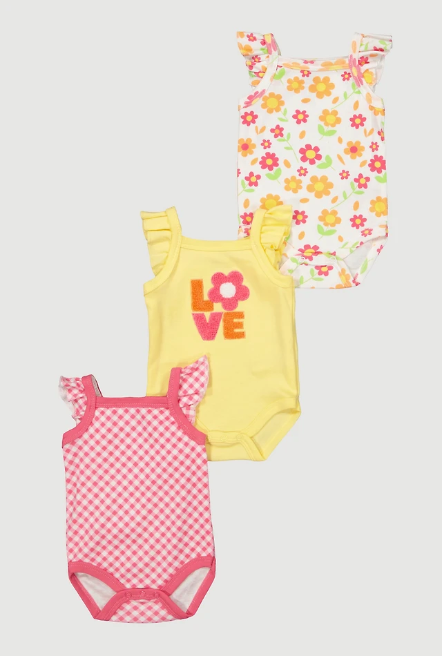 Baby Girls 0-9M Love Chenille Patch Bodysuits 3 Pack, Multi, Size 3-6M