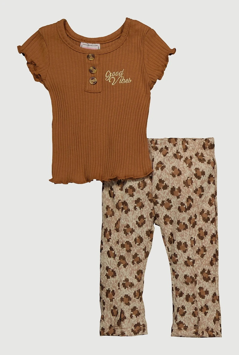 Baby Girls 0-9M Rib Knit Good Vibes Graphic Top and Leggings in San Juan, PR