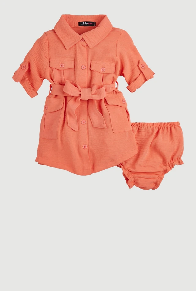 Baby Girls 12-24M Airy Tie Waist Belted Shirt Dress, Orange, Size 24M