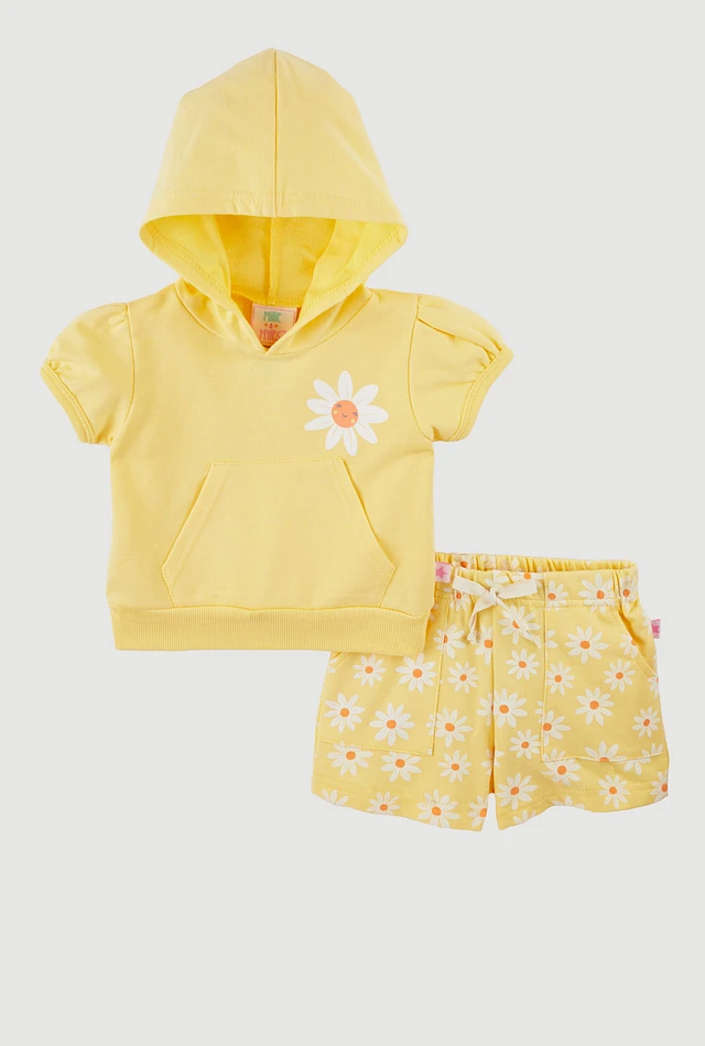 Baby Girls 12-24M Daisy Graphic Hooded Top and Shorts, Yellow, Size 24M