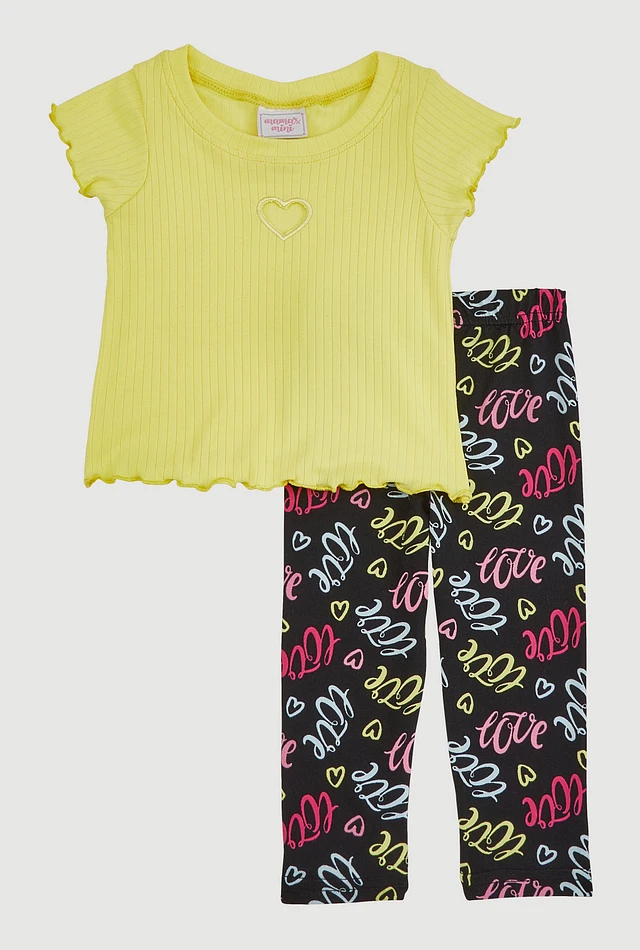 Baby Girls 12-24M Heart Keyhole Tee and Printed Leggings, Yellow,