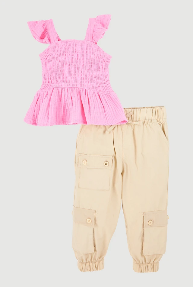 Baby Girls 12-24M Smocked Sleeveless Top and Cargo Joggers Set