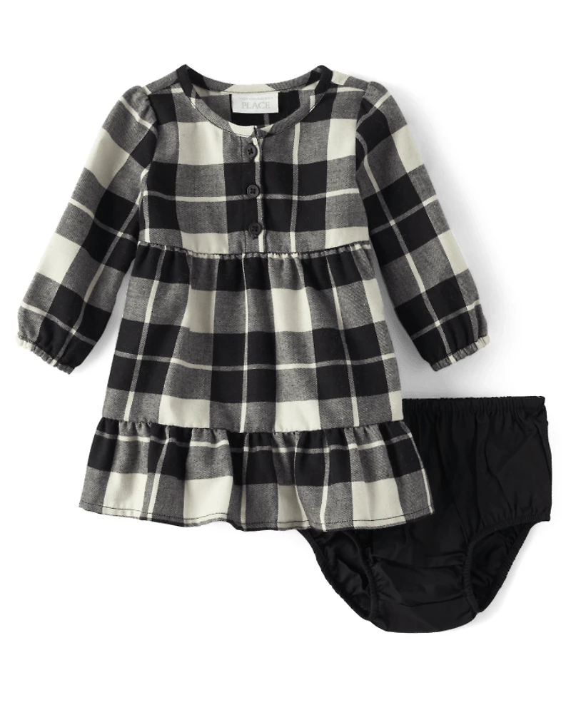 Baby Girls Matching Family Plaid Twill Tiered Shirt Dress
