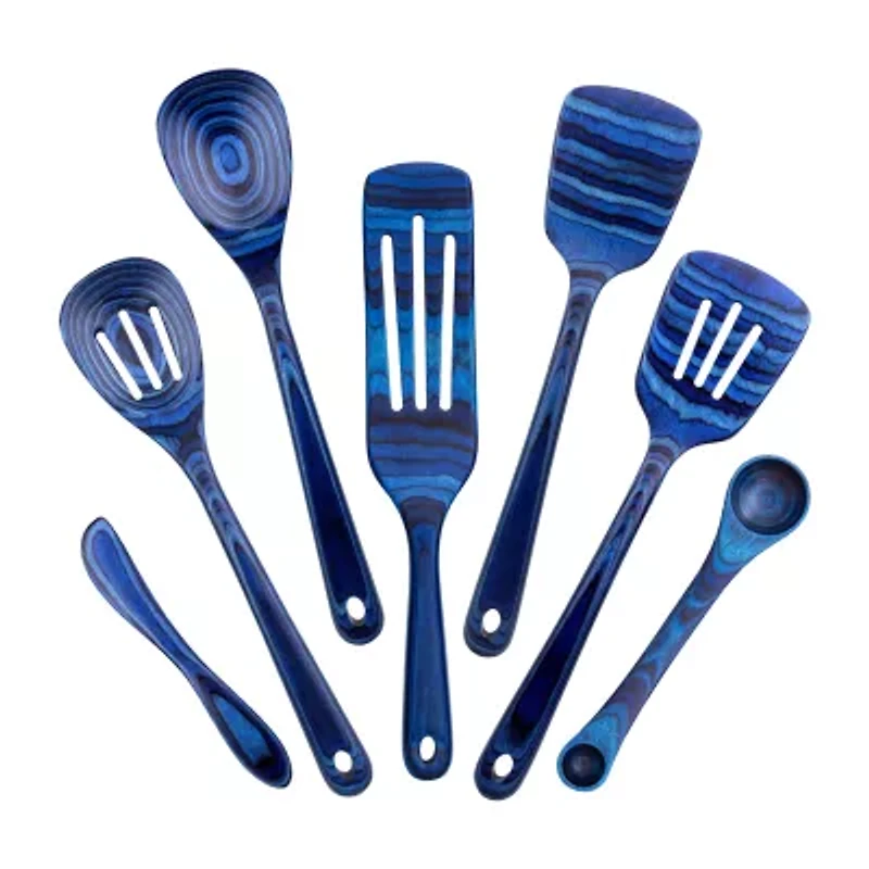 Add a splash of brilliant blue to your kitchen with the Baltique® Malta collection 4-piece utensil set. These eye-catching utensils are masterfully crafted from layers of colored birched wood to create a gorgeously deep color array. The Malta collection features a blend of deep blues inspired by the refreshing waters surrounding the picturesque Mediterranean island. This beautifully colored utensil set includes the most popular kitchen tools in the collection; a mixing spoon, slotted spoon, spatula and slotted spatula. The mixing spoons are perfect for stirring up soups and sauces while the spatulas are great for flipping and turning foods. When the cooking is complete, these eye-catching utensils are sure to impress guests at the dinner table. Each utensil measures 12-1/2 inches long, is safe for use on nonstick coatings and includes a convenient hanging hole for easy storage and display. To clean, hand wash or wipe with a damp cloth; do not soak or wash in the dishwasher.