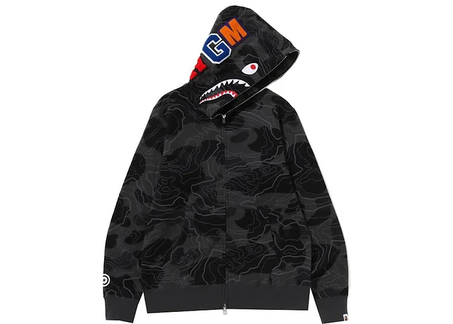 BAPE Layered Line Camo Shark Full Zip Hoodie Black