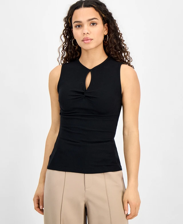 Bar Iii Petite Cutout Ribbed Sleeveless Top, Exclusively at Macy's