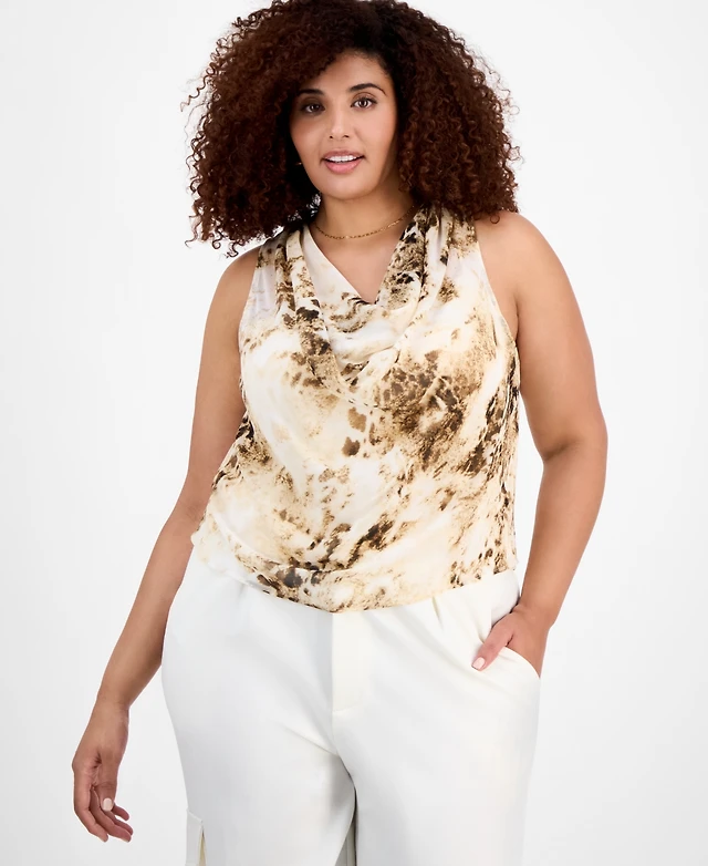 Bar Iii Plus Size Printed Chiffon Cowlneck Sleeveless Top, Exclusively at Macy's