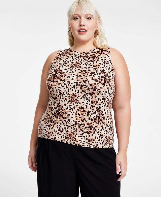 Bar Iii Trendy Plus Cheetah-Print Sleeveless Jersey Crewneck Top, Created for Macy's